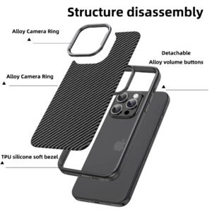 مواد فاخرة عالية الجودة: مصمم من ألياف الكربون المتينة مع إطار كاميرا معدني من الألومنيوم، يوفر الحماية المثالية مع مظهر أنيق فاخر.