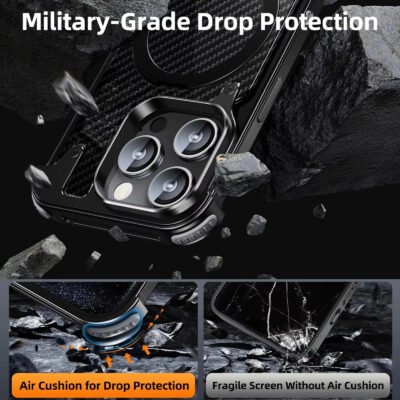 الكفر مصنوع من كاربون فايبر Premium بملمس فاخر، مقاوم للخدش والصدمات، وبيحافظ على الموبايل بأعلى مستوى.